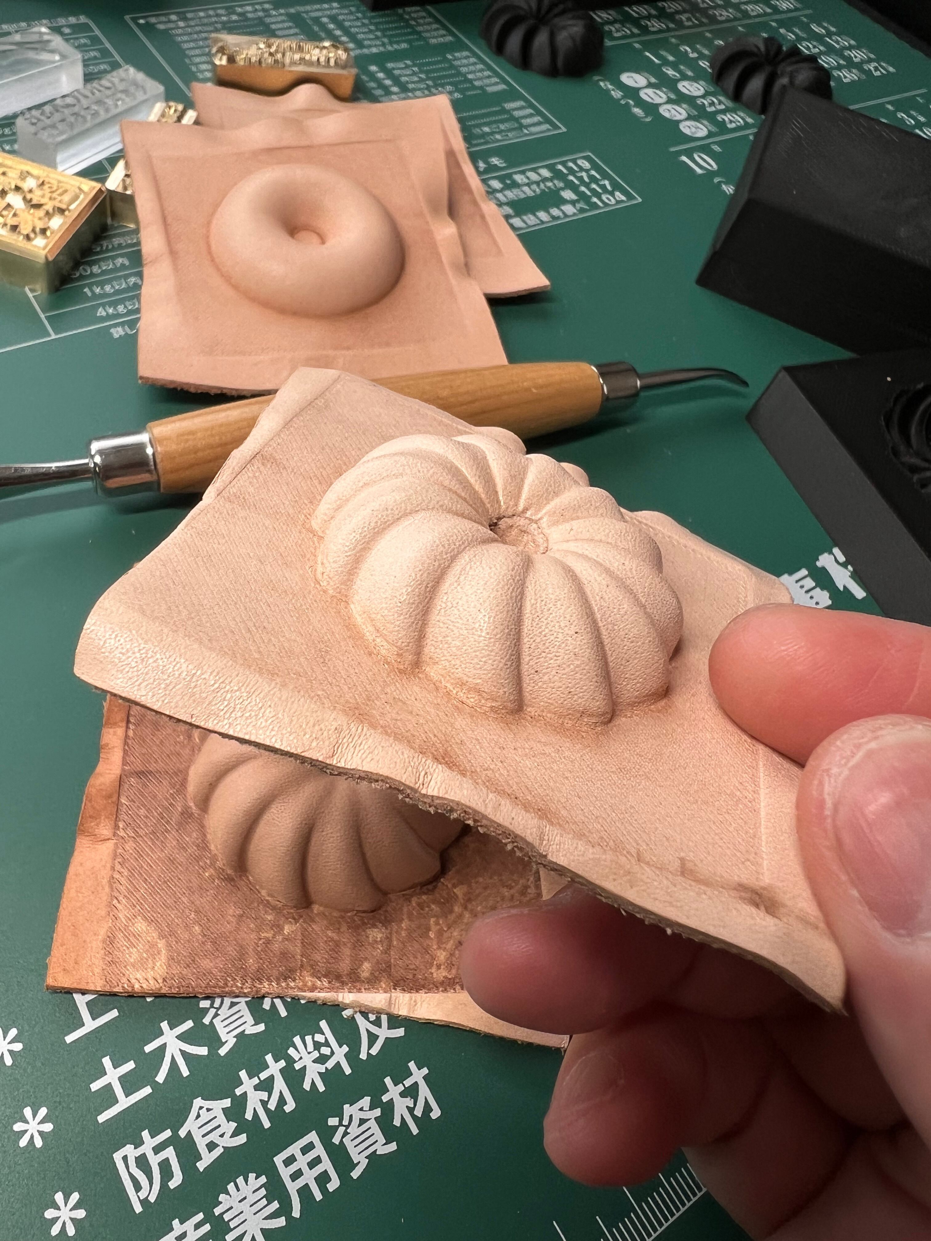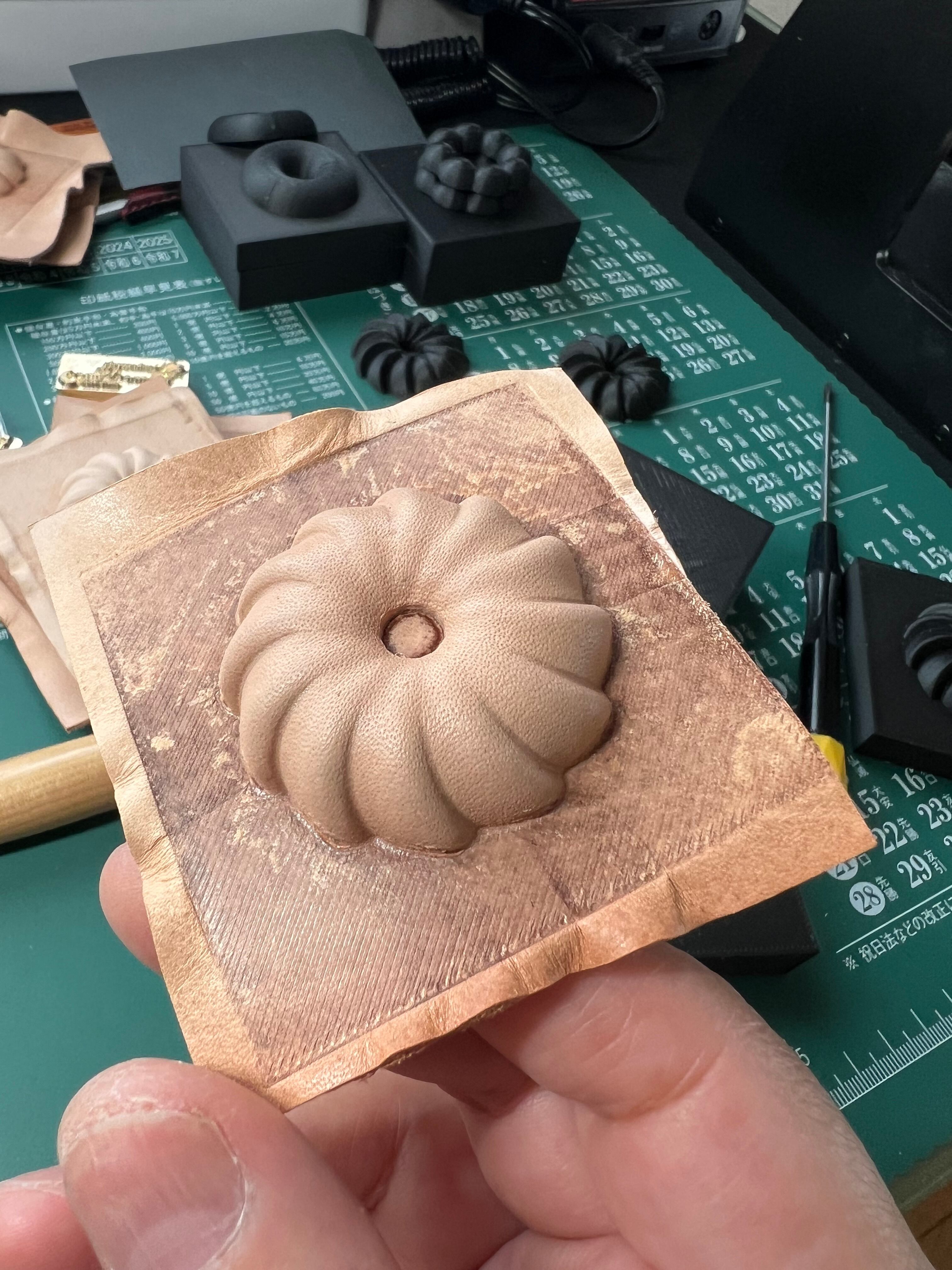 ヌメ革を濡らしてCクランプなどで成形可能。