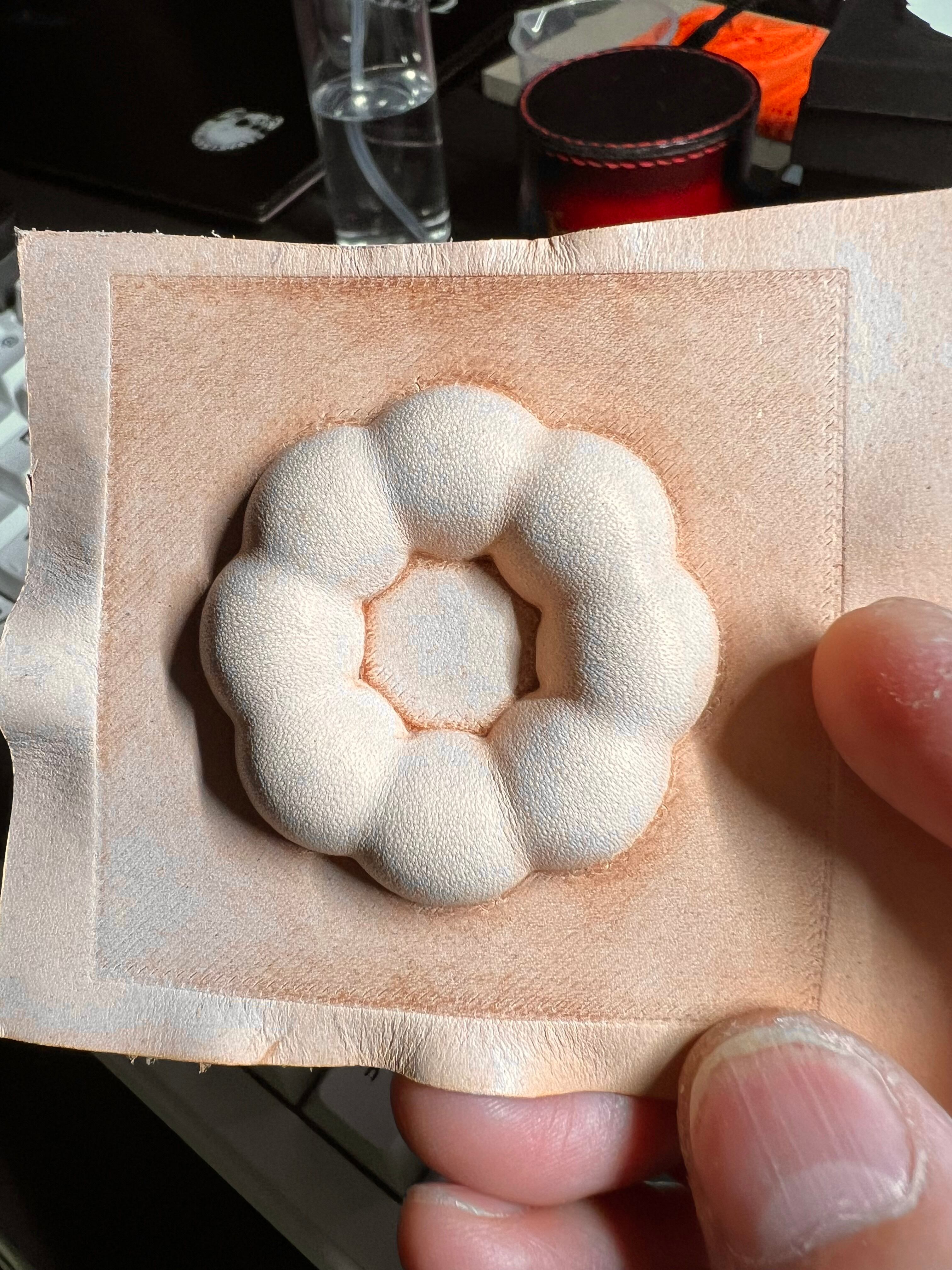 ヌメ革を濡らしてCクランプなどで成形可能。
