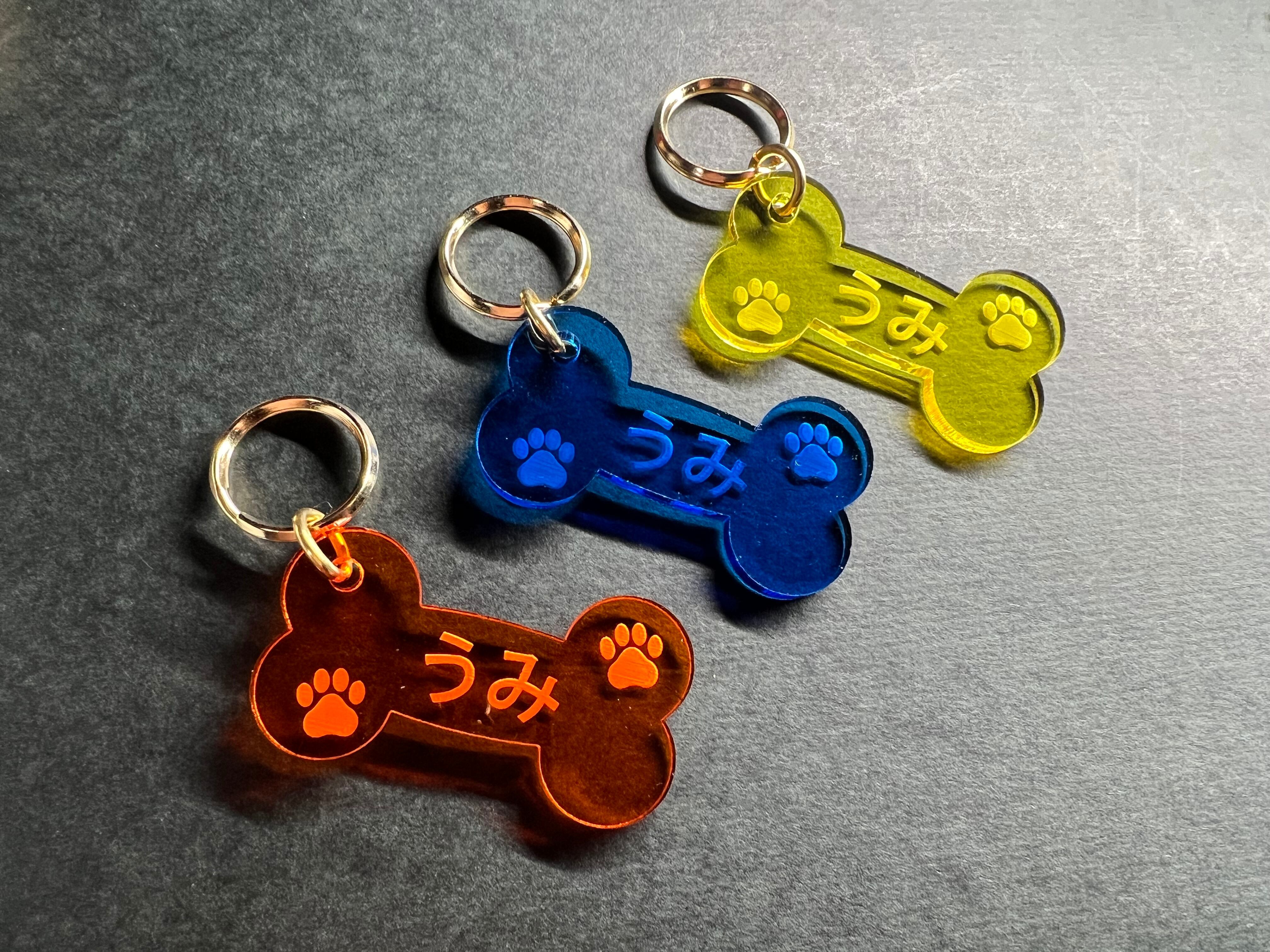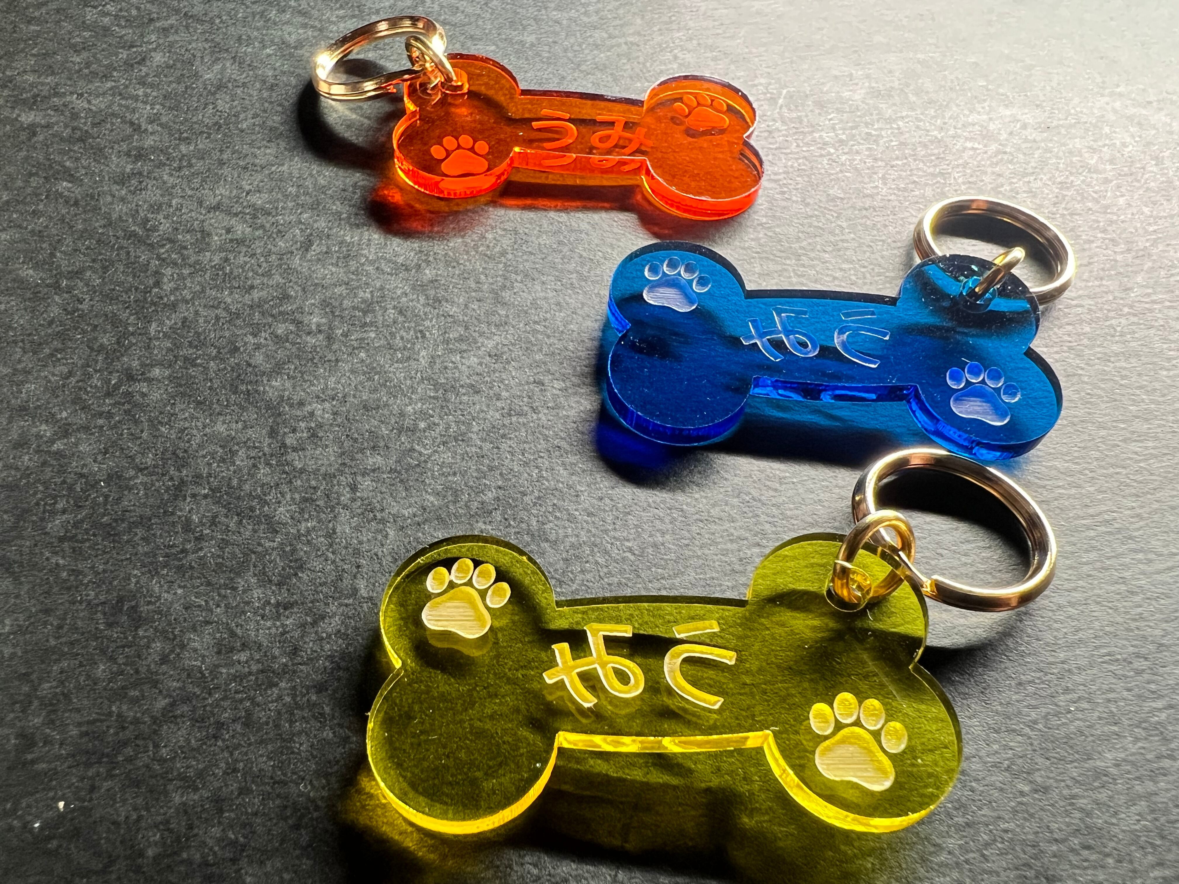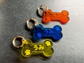 お好みのネームが入れられる可愛いホネ型のアクリルキーホルダーです。