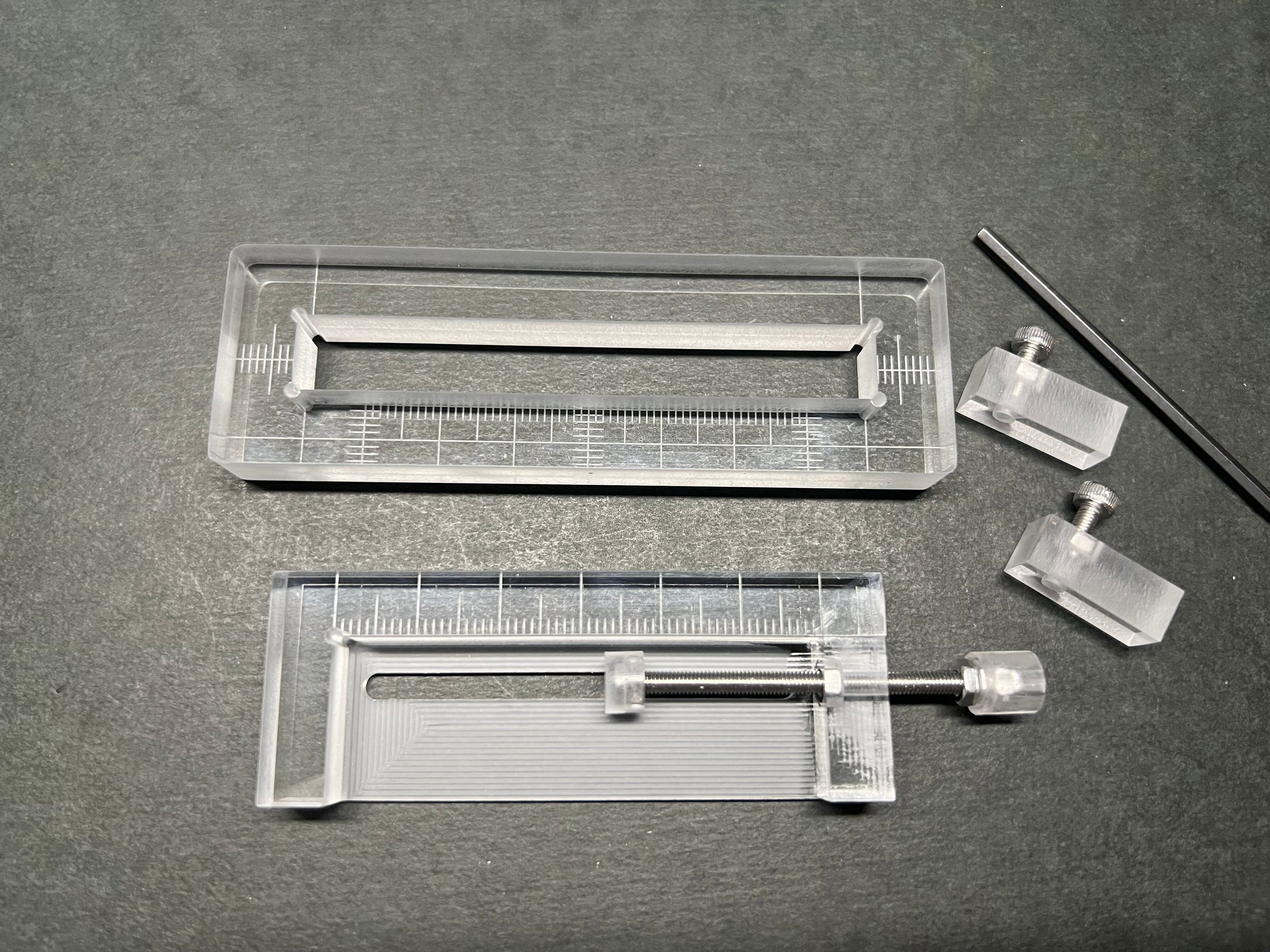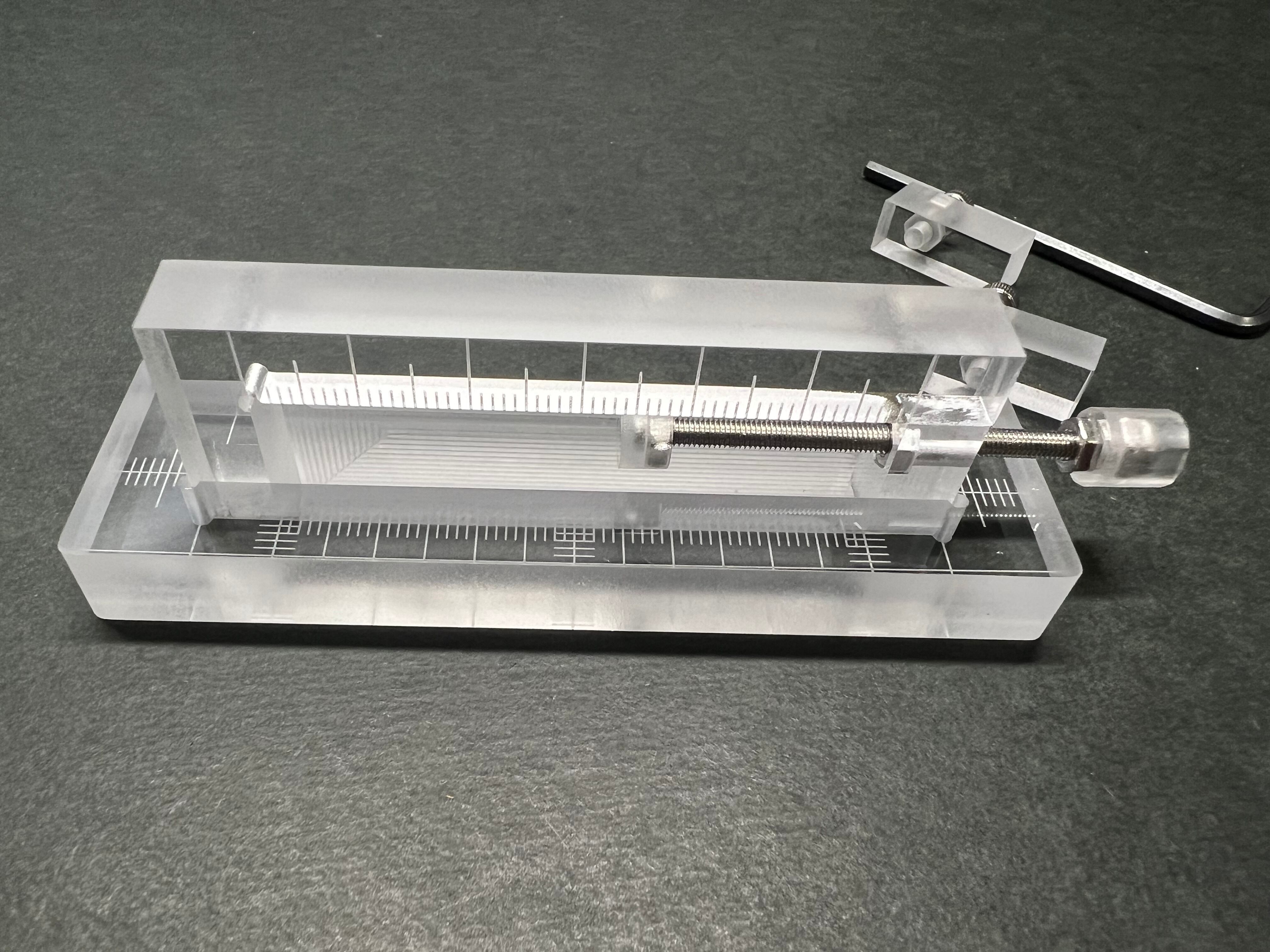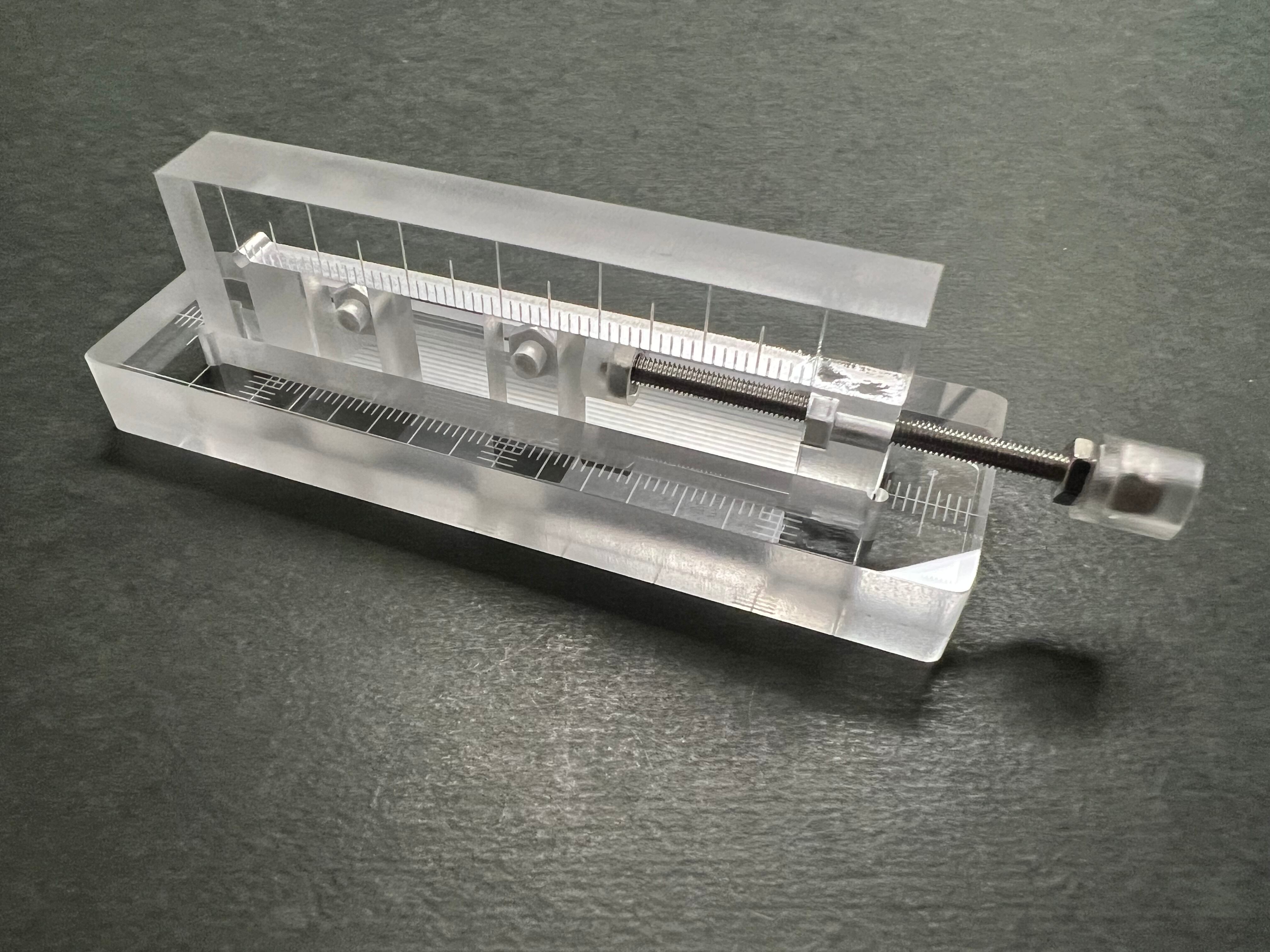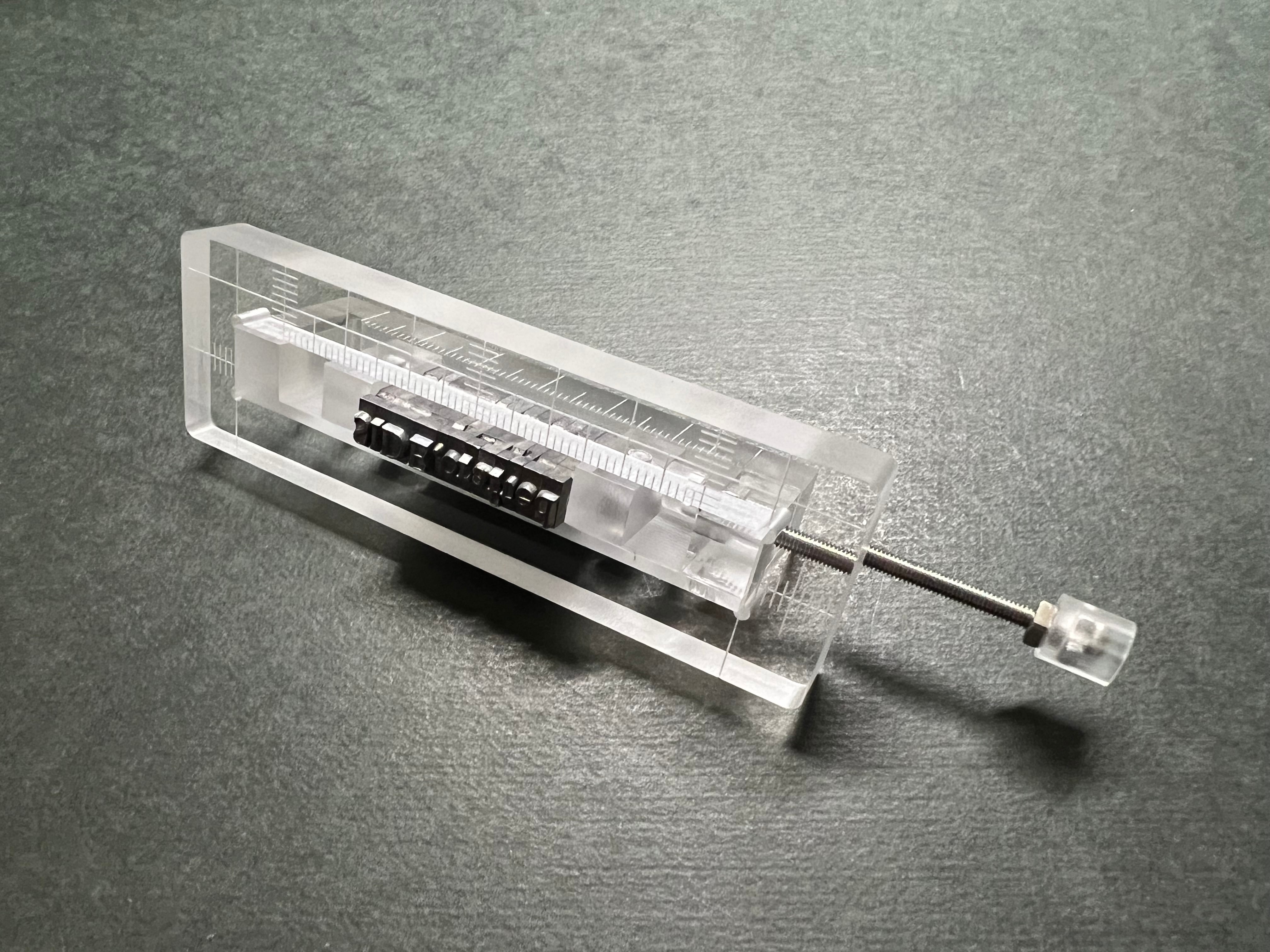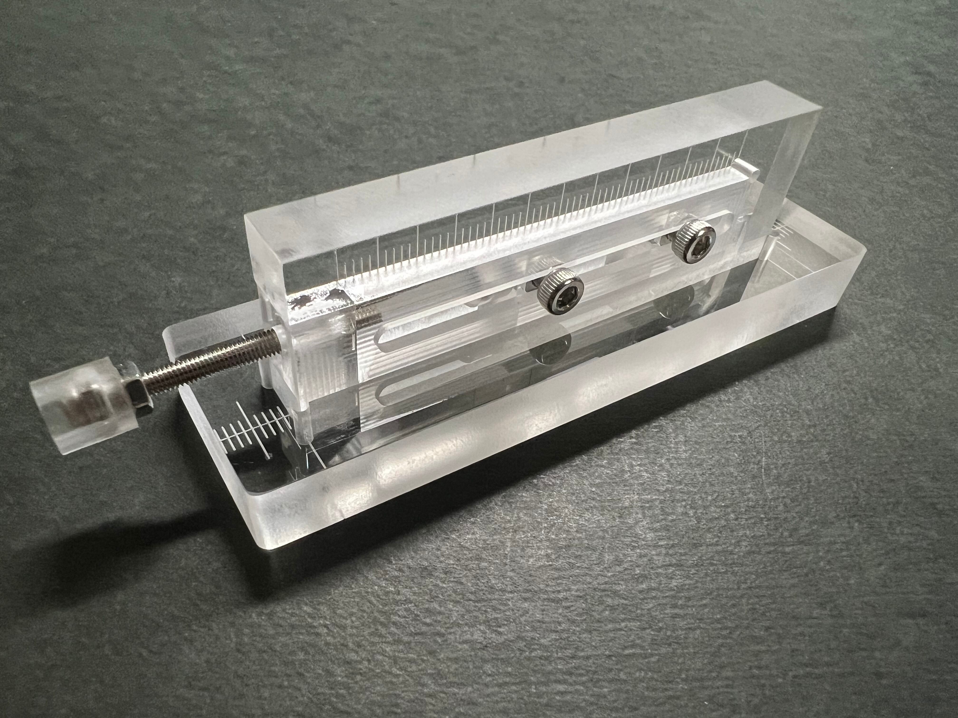 各部の調整はネジ式ですがツマミと先端はアクリル製のパーツを付けてありますので扱い易く高級感も演出しました。